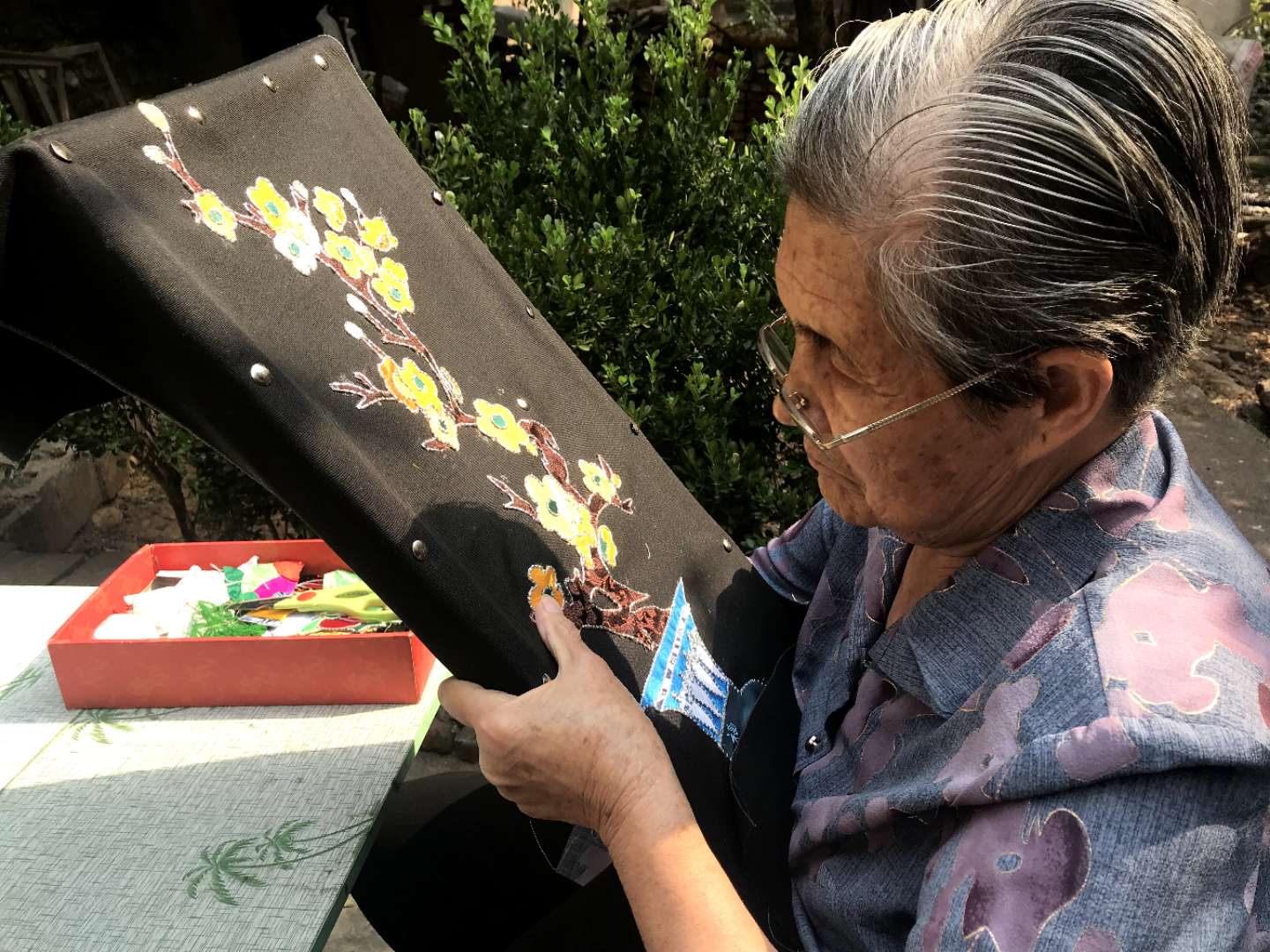 今年83歲的蔡月娥心靈手巧,從7歲開始,她就跟隨外婆和母親學(xué)習(xí)粘花技藝。