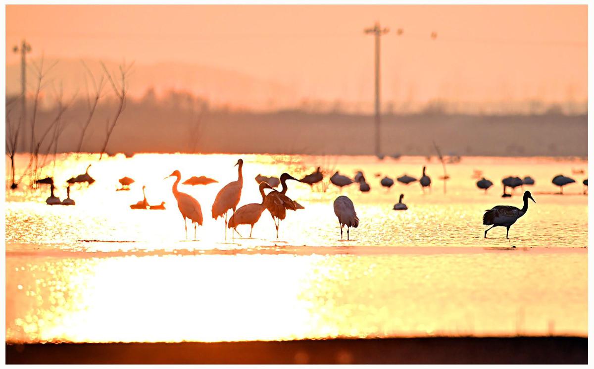 夕陽(yáng)下的網(wǎng)湖——白鶴歸來(lái) 柯聞峻 攝