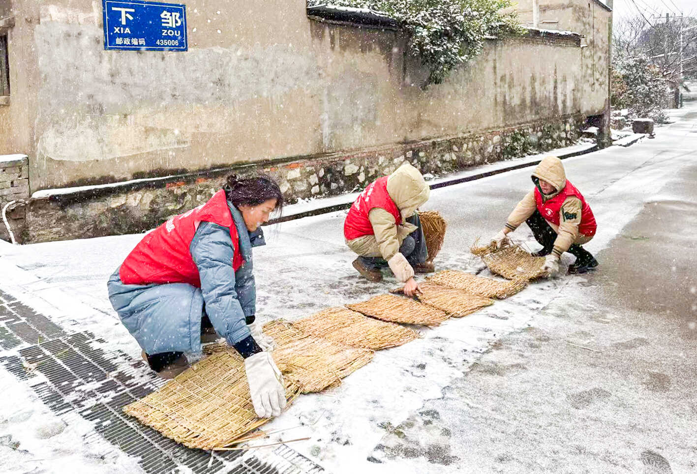 19日,開發(fā)區(qū)·鐵山區(qū)三岔路社區(qū)組織志愿者開展“低溫雨雪防范 暖心上門關(guān)懷”行動(dòng),通過鋪設(shè)草墊,走訪高齡獨(dú)居老人,排查隱患,確保居民出行安全。(黃石融媒記者 鄢巍 通訊員 張夢(mèng)琪 陶雨晴 攝)