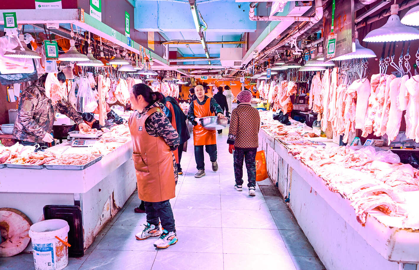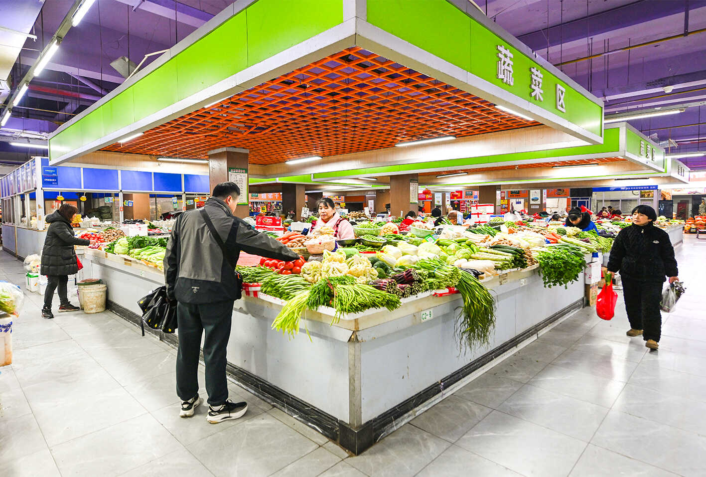19日,在黃石市采陽(yáng)園(永安)生活廣場(chǎng),各類(lèi)生活物資儲(chǔ)備充足,蔬菜、糧油、肉禽等主要商品價(jià)格總體平穩(wěn),“菜籃子”保供穩(wěn)價(jià)有序有力。(黃石融媒記者 鄢巍 攝)