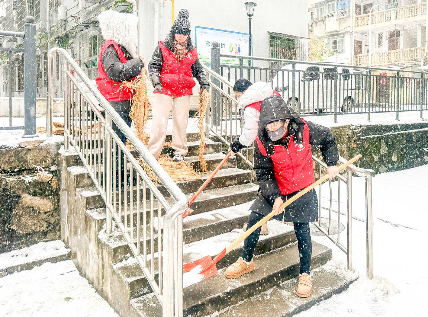 20日,開(kāi)發(fā)區(qū)·鐵山區(qū)九龍洞社區(qū)組織志愿者開(kāi)展除雪志愿服務(wù),確保居民正常生活不受影響。(黃石融媒記者 鄢巍 通訊 杜晶晶 攝)