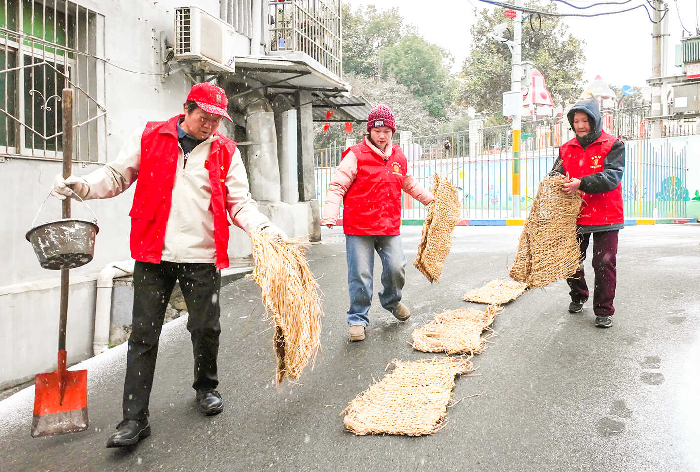 20日,開發(fā)區(qū)·鐵山區(qū)建設(shè)路社區(qū)組織網(wǎng)格“微”管家志愿者鋪設(shè)草墊,拋灑工業(yè)鹽,保障居民出行,守護(hù)平安。(黃石融媒記者 鄢巍 通訊員 陳瑞 攝)