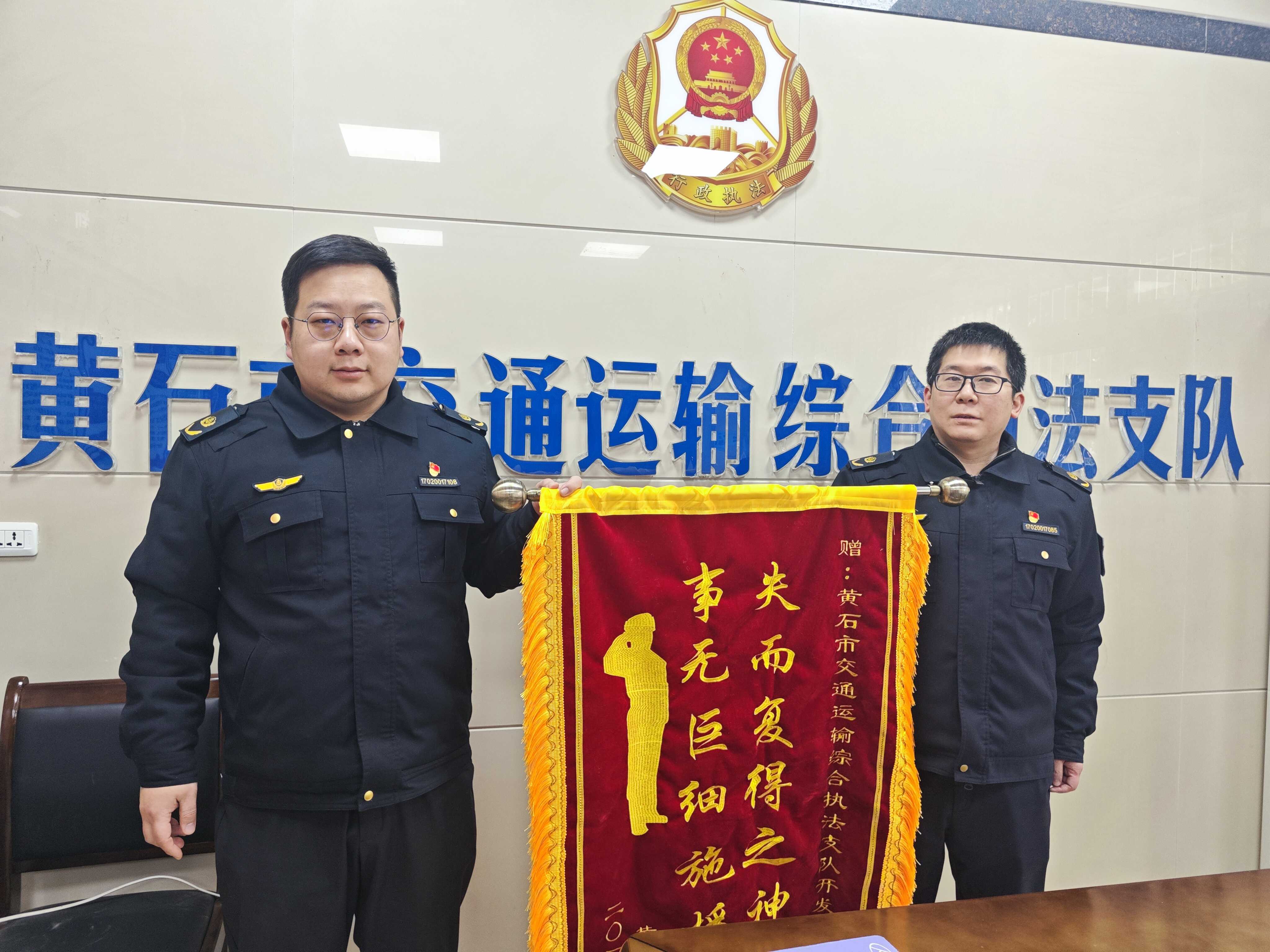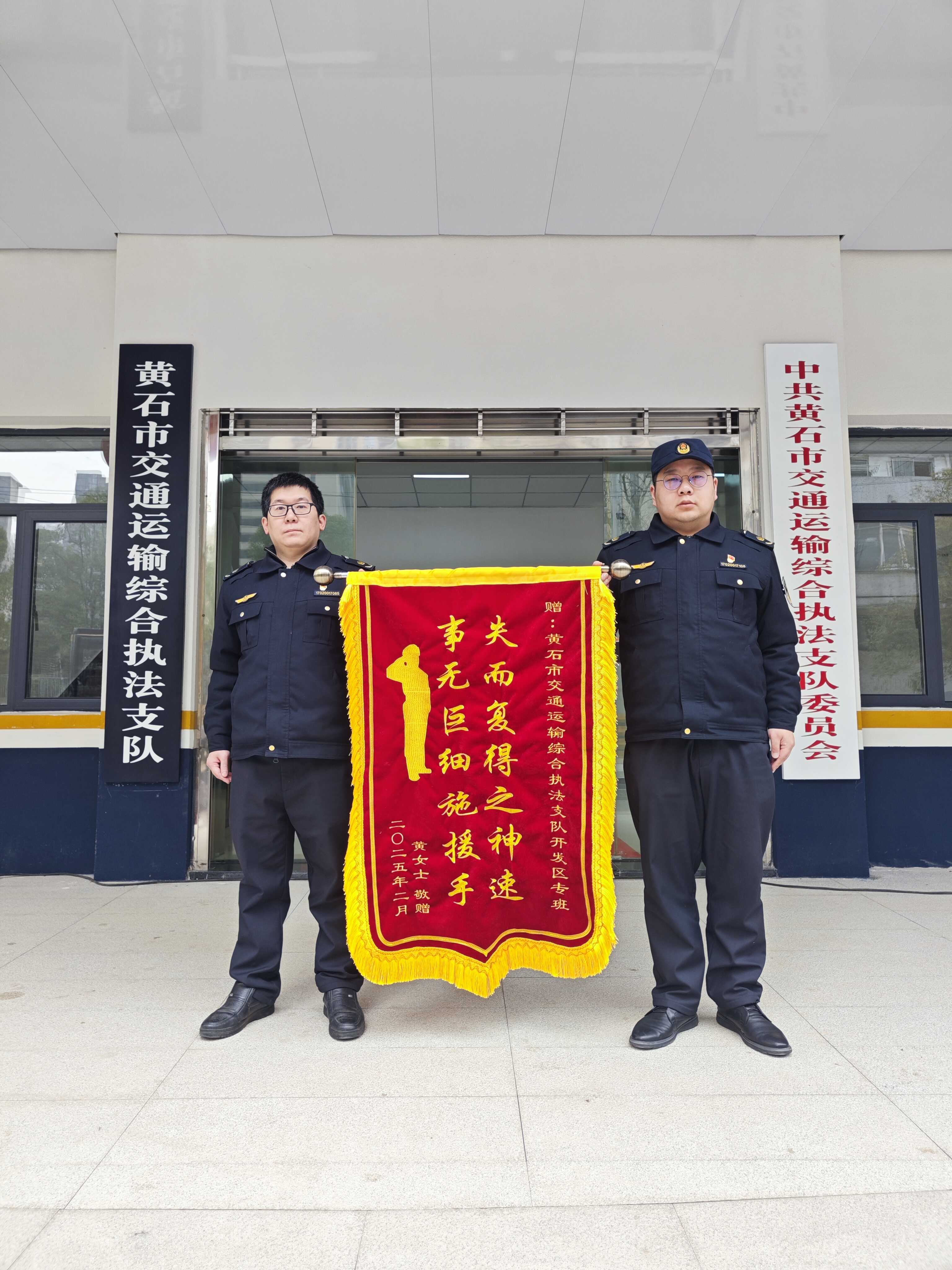 近日,黃石市交通運輸綜合執(zhí)法支隊開發(fā)區(qū)專班喬治等執(zhí)法人員成功幫助群眾追回丟失行李,獲廣西來黃旅客贈與的錦旗與感謝信,以實際行動詮釋了“為人民服務”的宗旨,展現(xiàn)了交通執(zhí)法人員的責任與擔當。