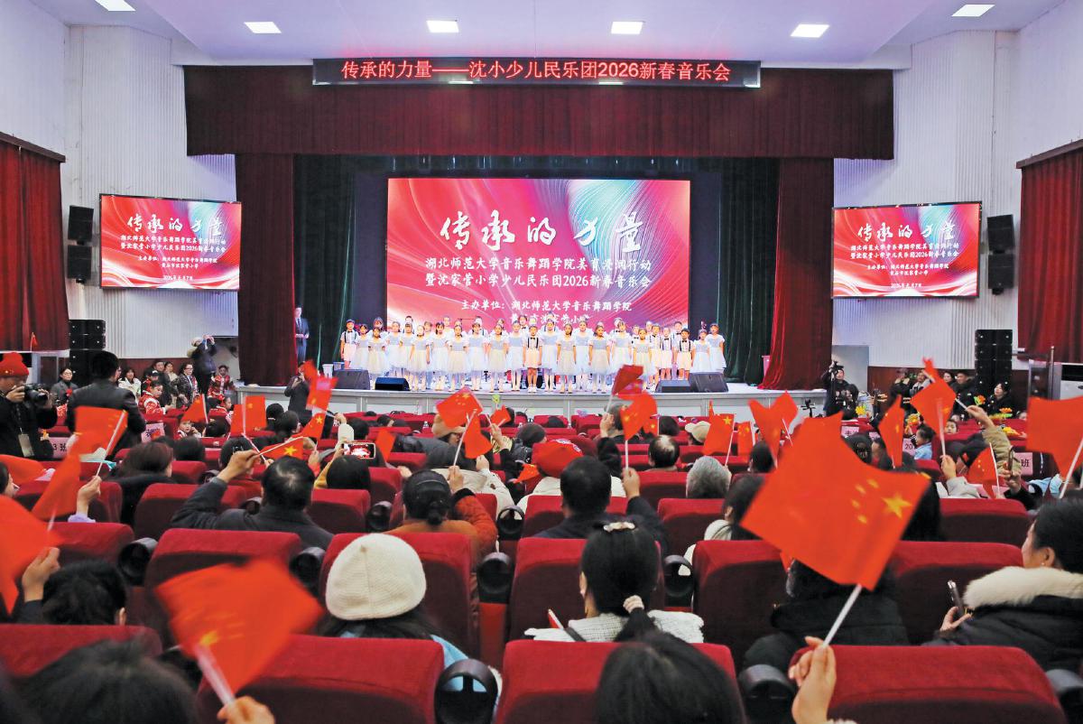 湖北師范大學(xué)音樂舞蹈學(xué)院美育浸潤(rùn)行動(dòng)暨沈家營小學(xué)少兒民樂團(tuán)2026新春音樂會(huì)在湖師大舉行。
