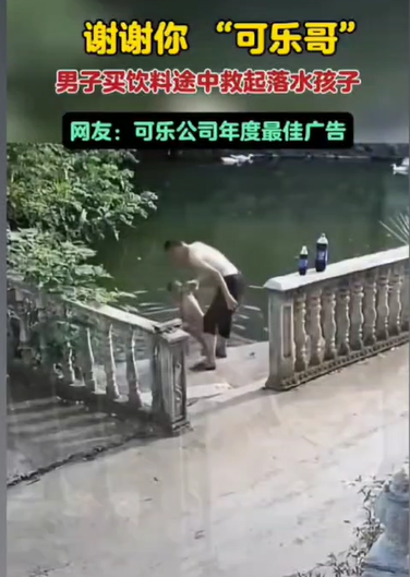 10日以來(lái),?黃石開(kāi)發(fā)區(qū)·鐵山區(qū)太子鎮(zhèn)上董灣居民董名仁救起一名落水兒童的視頻在網(wǎng)絡(luò)上熱傳,網(wǎng)友們紛紛留言點(diǎn)贊,親切地稱(chēng)其為“可樂(lè)哥”。