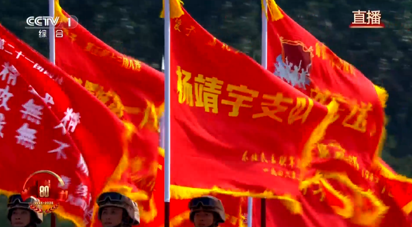 楊靖宇連、劉老莊連、狼牙山五壯士連……上午9點(diǎn)58分,東風(fēng)猛士搭載80面抗戰(zhàn)英模旗幟來(lái)到天安門(mén)廣場(chǎng)受閱,肩扛著抗戰(zhàn)英烈的精神火炬與民族榮光。戰(zhàn)旗方隊(duì)接受檢閱的80面戰(zhàn)旗,從全軍各部隊(duì)遴選確定,來(lái)自東、南、西、北、中五大戰(zhàn)區(qū),涵蓋陸、海、空軍和武警部隊(duì),由團(tuán)、營(yíng)、連三級(jí)功勛榮譽(yù)單位代表組成。戰(zhàn)旗方隊(duì)在2019年慶祝新中國(guó)成立70周年閱兵中首次亮相,這是第二次成建制組成戰(zhàn)旗方隊(duì)參加閱兵。
