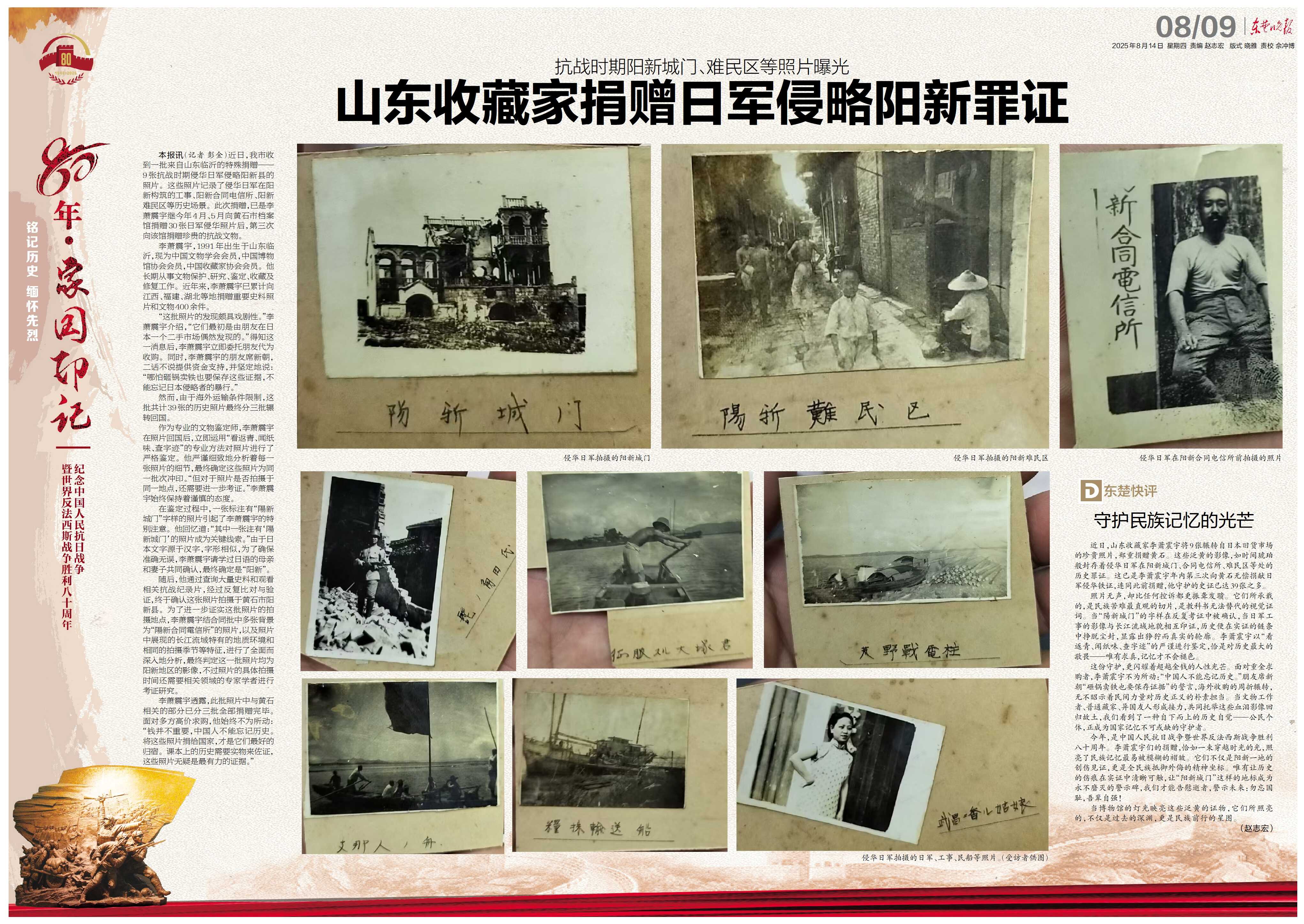 今年,是中國人民抗日戰(zhàn)爭暨世界反法西斯戰(zhàn)爭勝利八十周年。李蕭震宇們的捐贈,恰如一束穿越時光的光,照亮了民族記憶最易被模糊的褶皺。它們不僅是陽新一地的創(chuàng)傷見證,更是全民族抵御外侮的精神坐標(biāo)。唯有讓歷史的傷痕在實證中清晰可觸,讓“陽新城門”這樣的地標(biāo)成為永不磨滅的警示碑,我們才能告慰逝者,警示未來:勿忘國恥,吾輩自強!