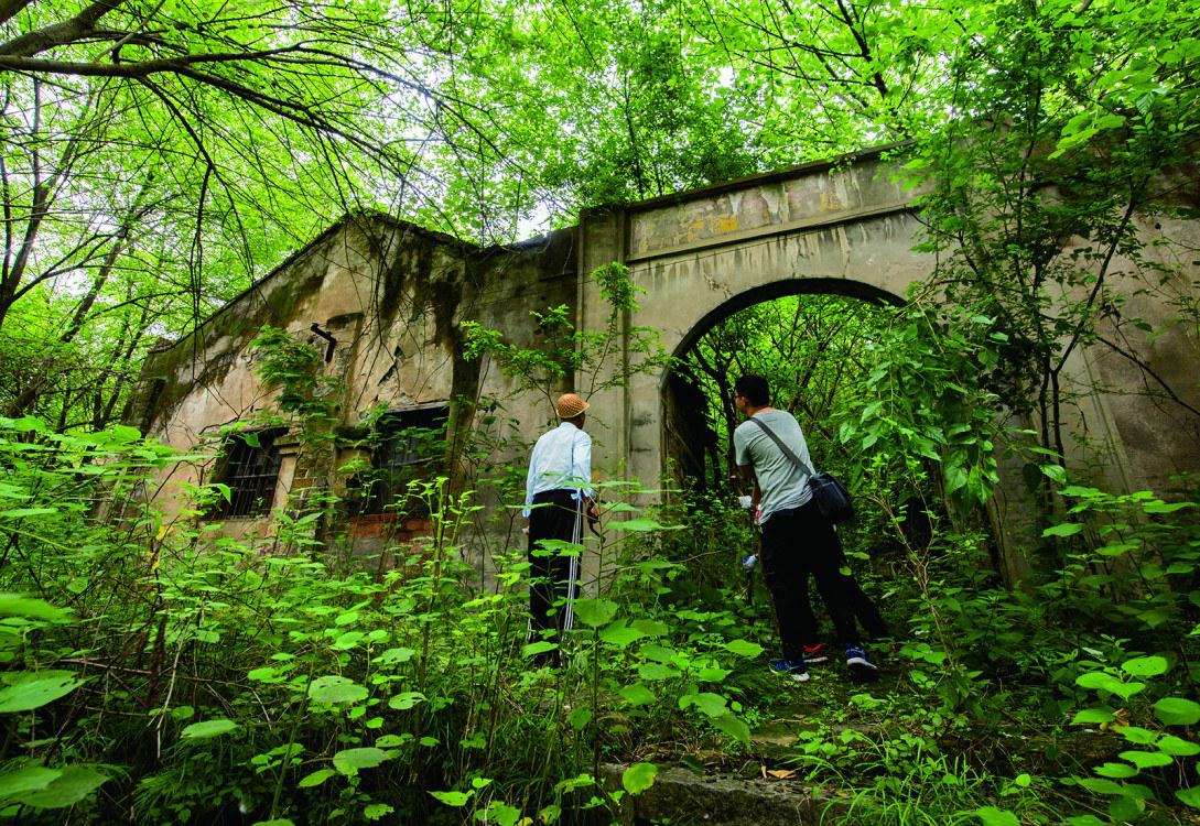 在熊忠武的帶領(lǐng)下,記者來到黃荊山腳下,沿著云霧洞旁蜿蜒的公路向上攀登,只見三個幽深的山洞掩映在一片雜草叢中。漆黑的山洞中有一塊厚實(shí)的大石塊,熊忠武說:“這就是高空索道的轉(zhuǎn)揚(yáng)機(jī)底座?!?/p>