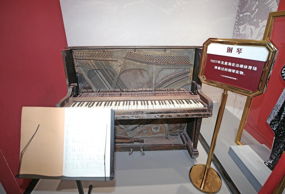 “這就是冼星海當(dāng)年在冶雄體育場指揮抗日救亡歌詠時使用過的鋼琴,是從德國漢堡進(jìn)口的?!敝x萍說。當(dāng)工作人員輕輕掀開發(fā)黃的琴譜,《救國軍歌》的旋律隨即在展館內(nèi)回蕩。那激昂的音符仿佛穿越時空,將人帶回那個烽火連天又熱血沸騰的年代。