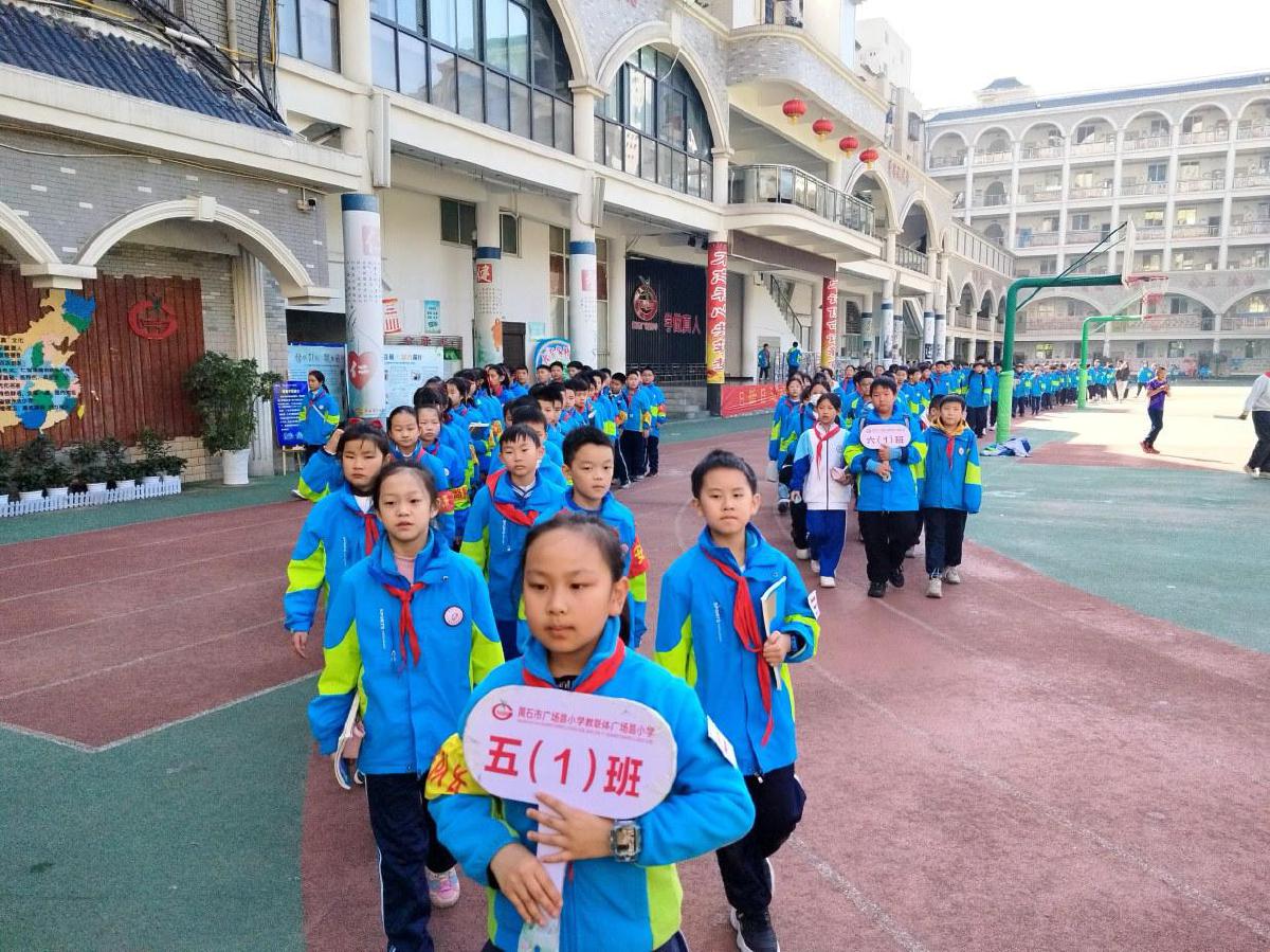 11月26日中午11時55分,伴隨著放學(xué)的鈴聲響起,黃石市廣場路小學(xué)的校園里,一場無聲的“文明演練”如期展開。三至六年級學(xué)生組成的路隊,構(gòu)成一幅秩序井然的“禮讓畫卷”。
